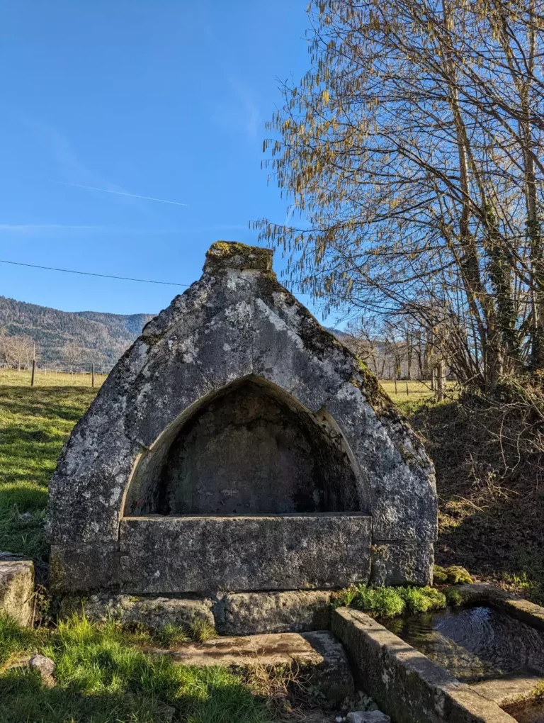 Au hameau de Poisieu, remarquable ensemble architectural constitué de trois monuments : une fontaine médiévale (avec une voûte en arc brisé), un calvaire du XIIème siècle et un four banal.
